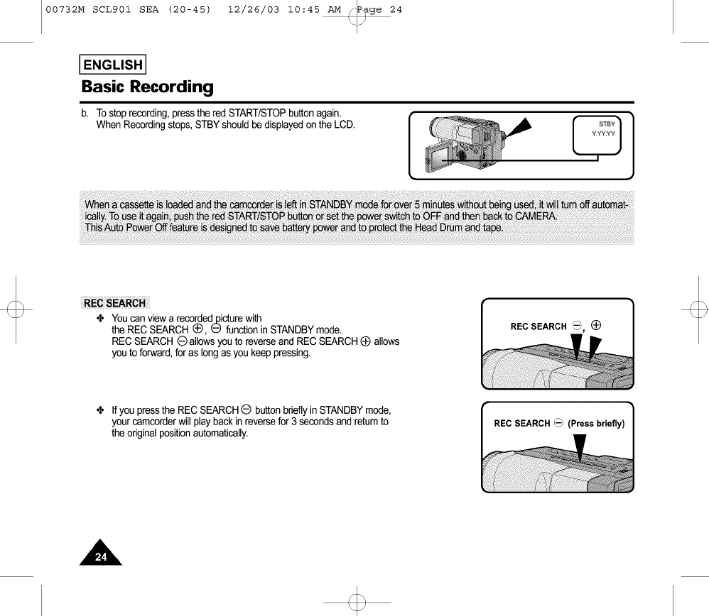 the REC SEARCH(_, E) functionin STANDBYmode.