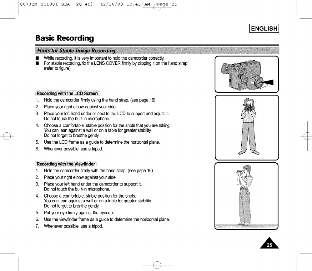 • Whilerecording,it is veryimportantto holdthecamcordercorrectly.
