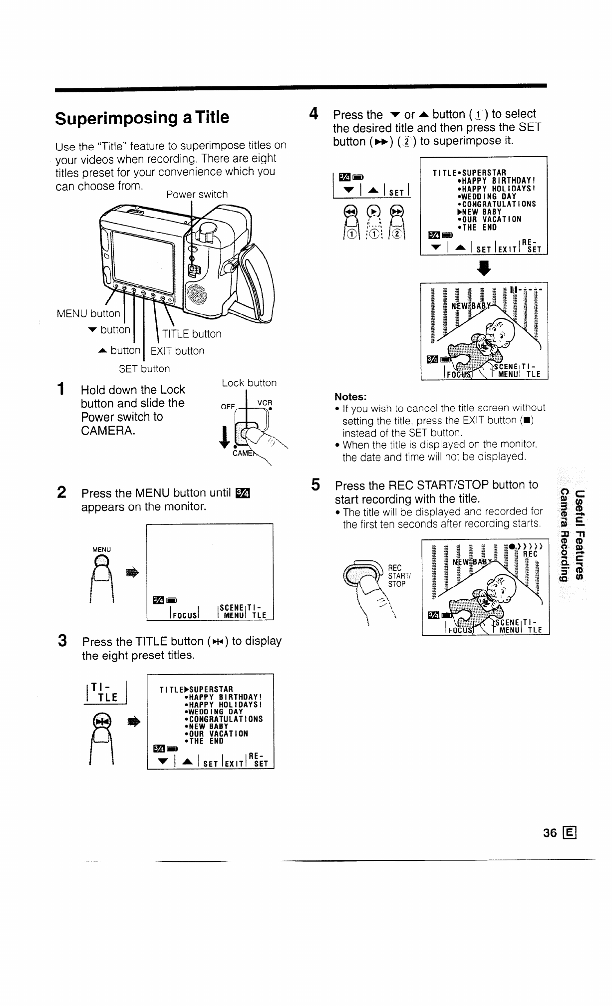 Use the “Title” feature to superimpose titles on