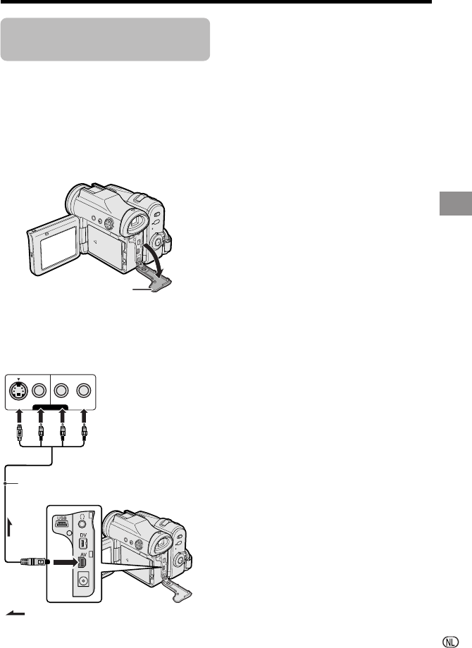 • Zorg dat de camcorder, TV, videorecorder en