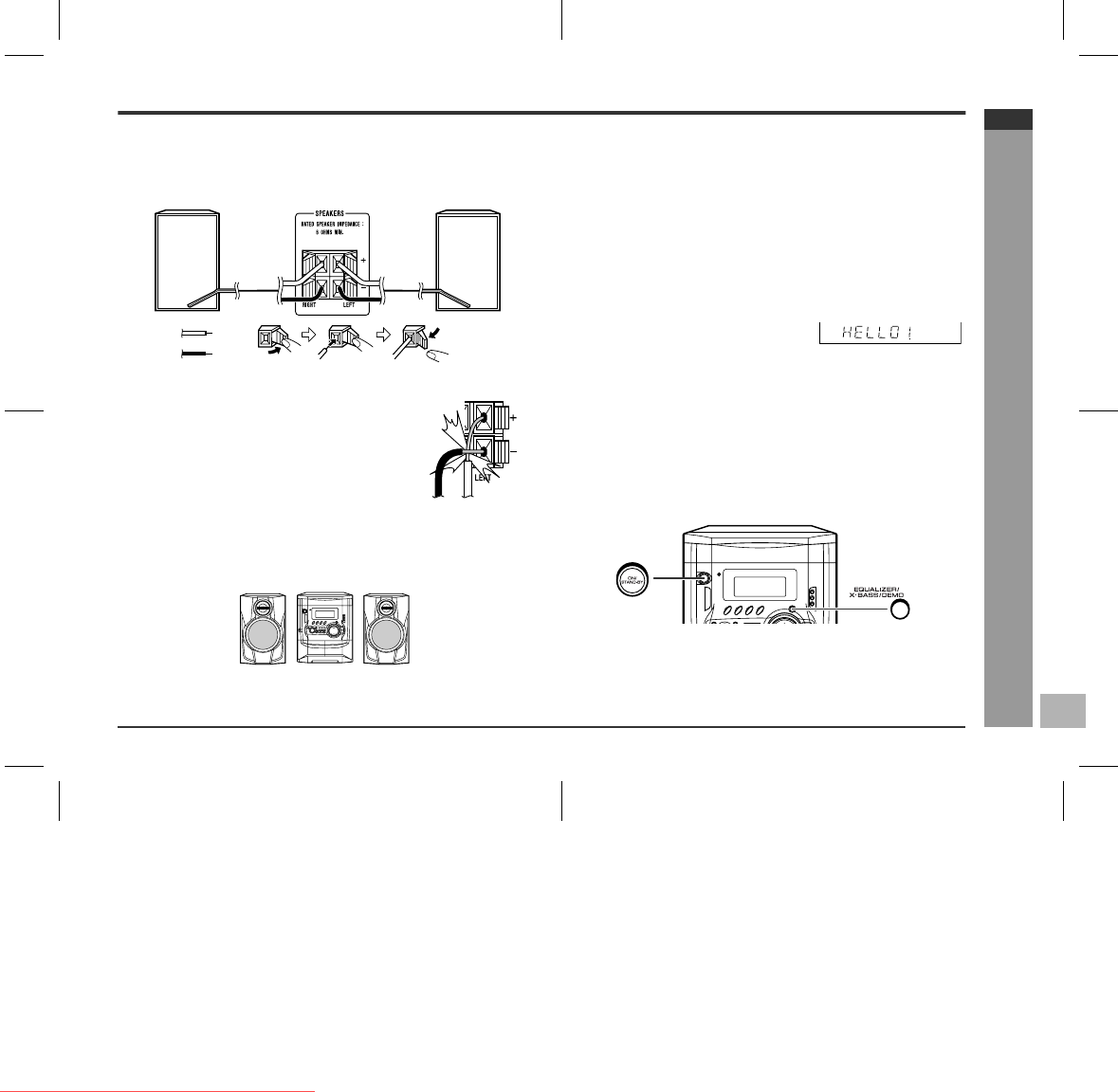 When the power is on, the EQUALIZER/X-BASS/DEMO button can be used to select