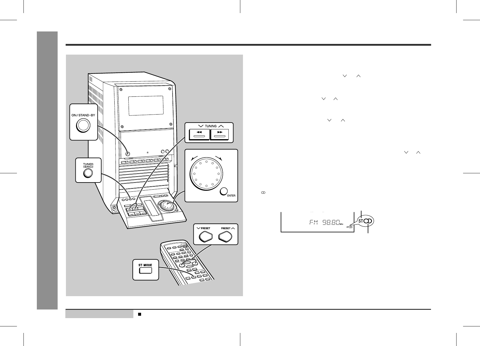 Appuyer sur la touche ST-MODE de la télécommande pour afficher "ST".