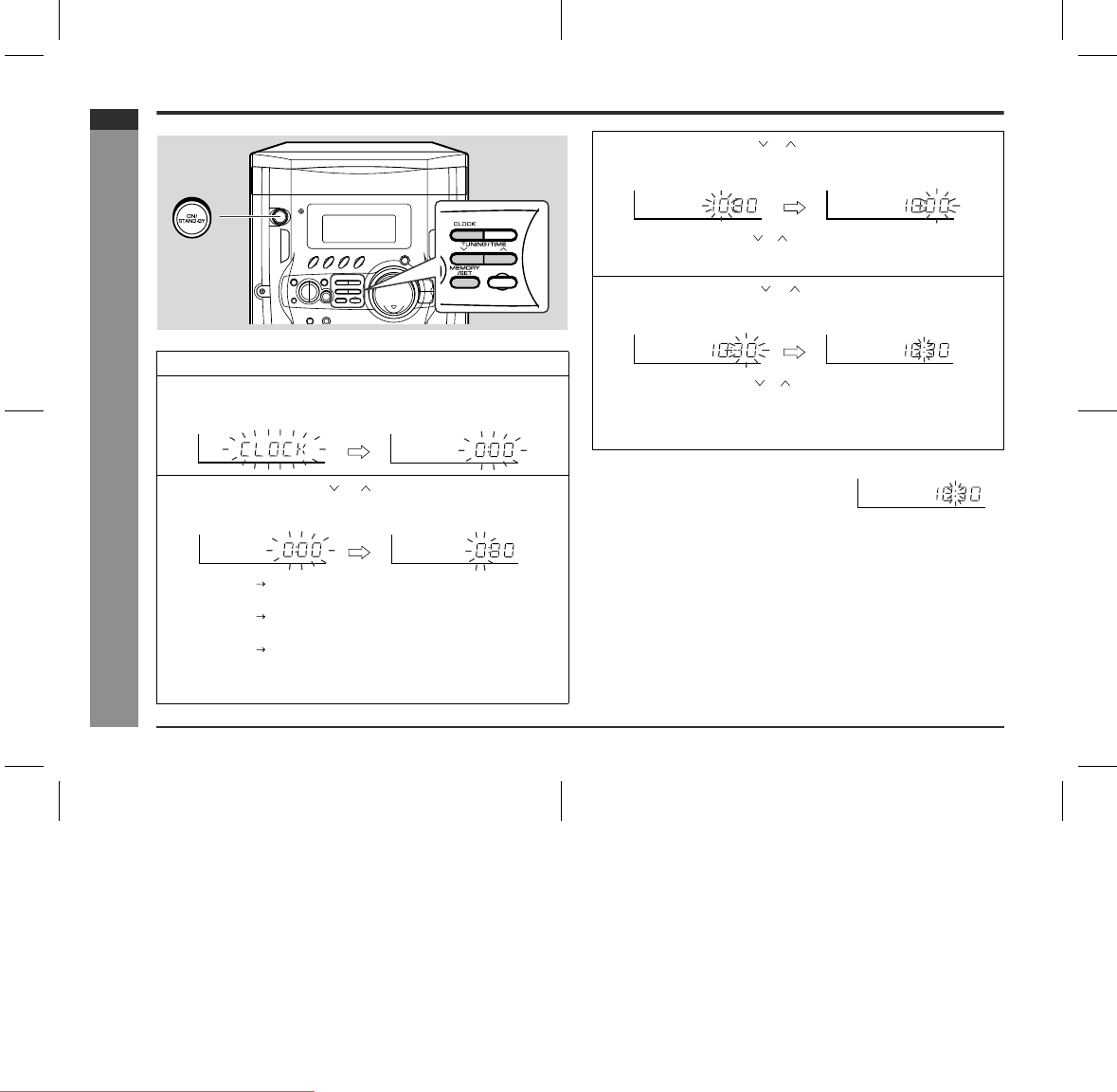 Perform "Setting the clock" from step 1. If the time display is flashing, step 3 (for