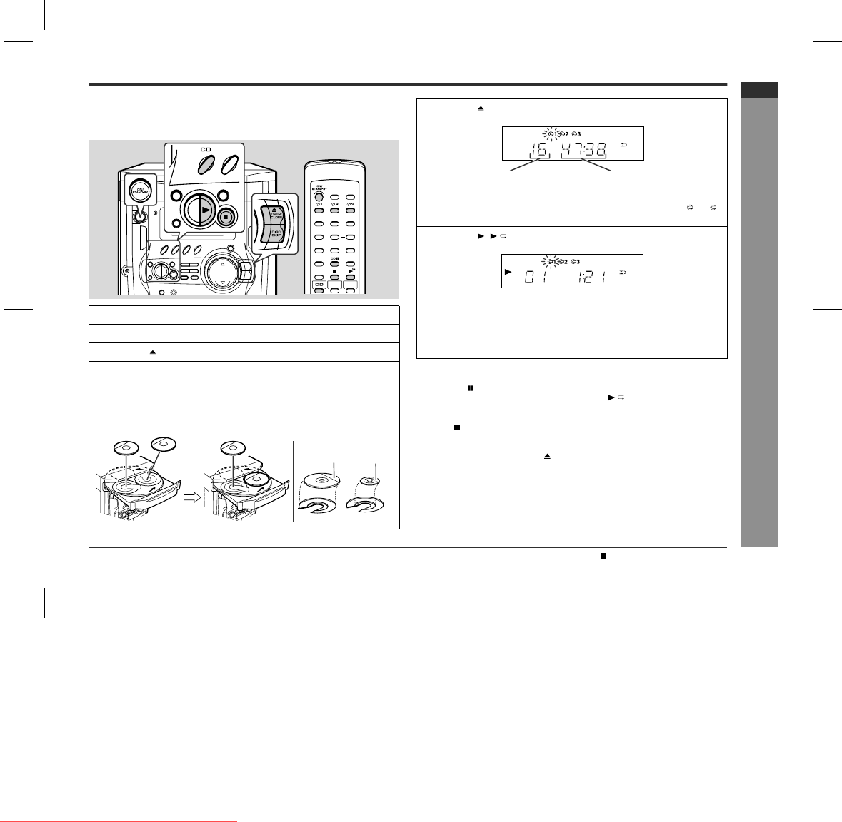 When loading a third disc, press the DISC SKIP button to turn the