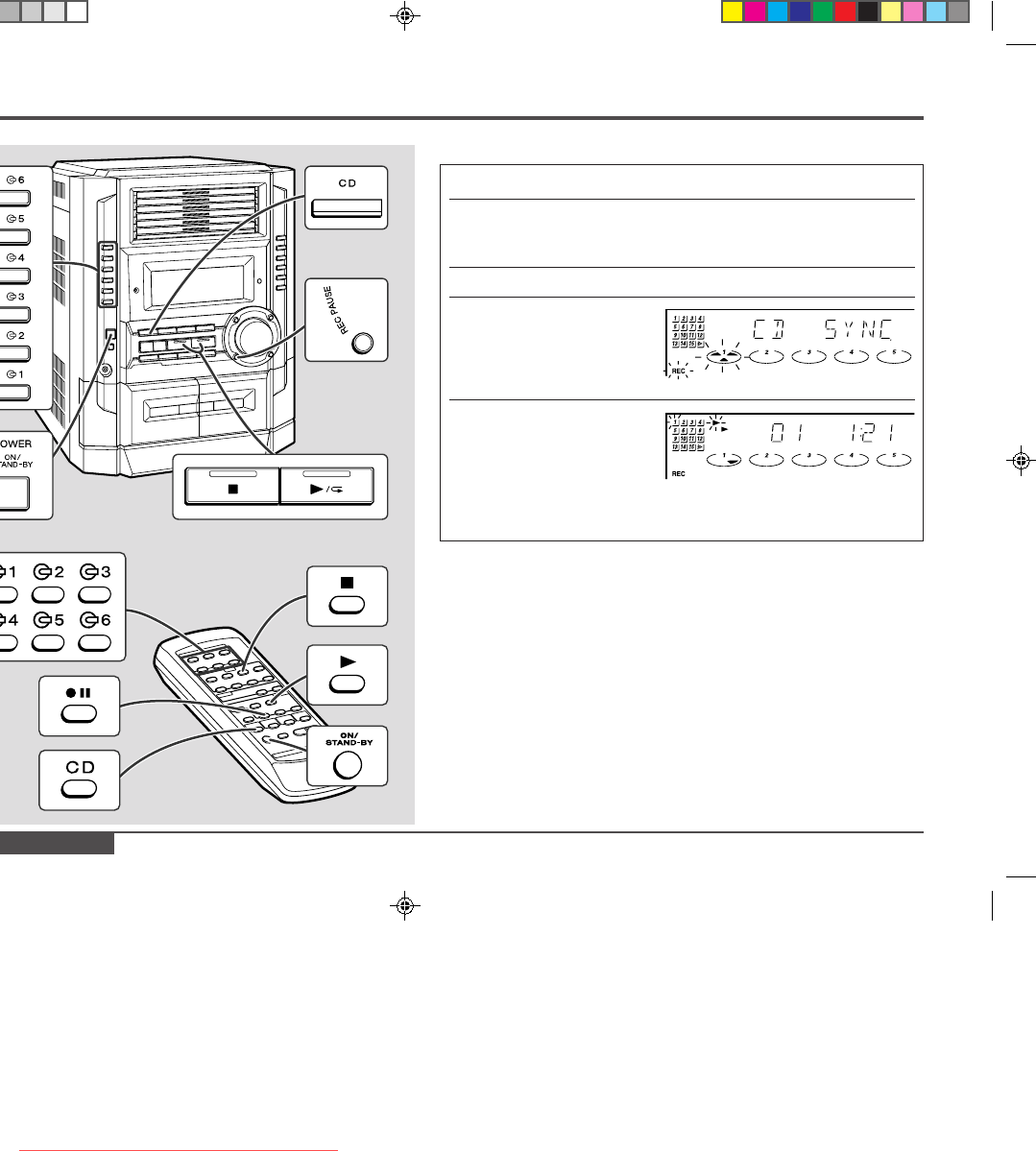 REC PAUSE (I6) button and then the 0/R (TAPE 2 0) button.