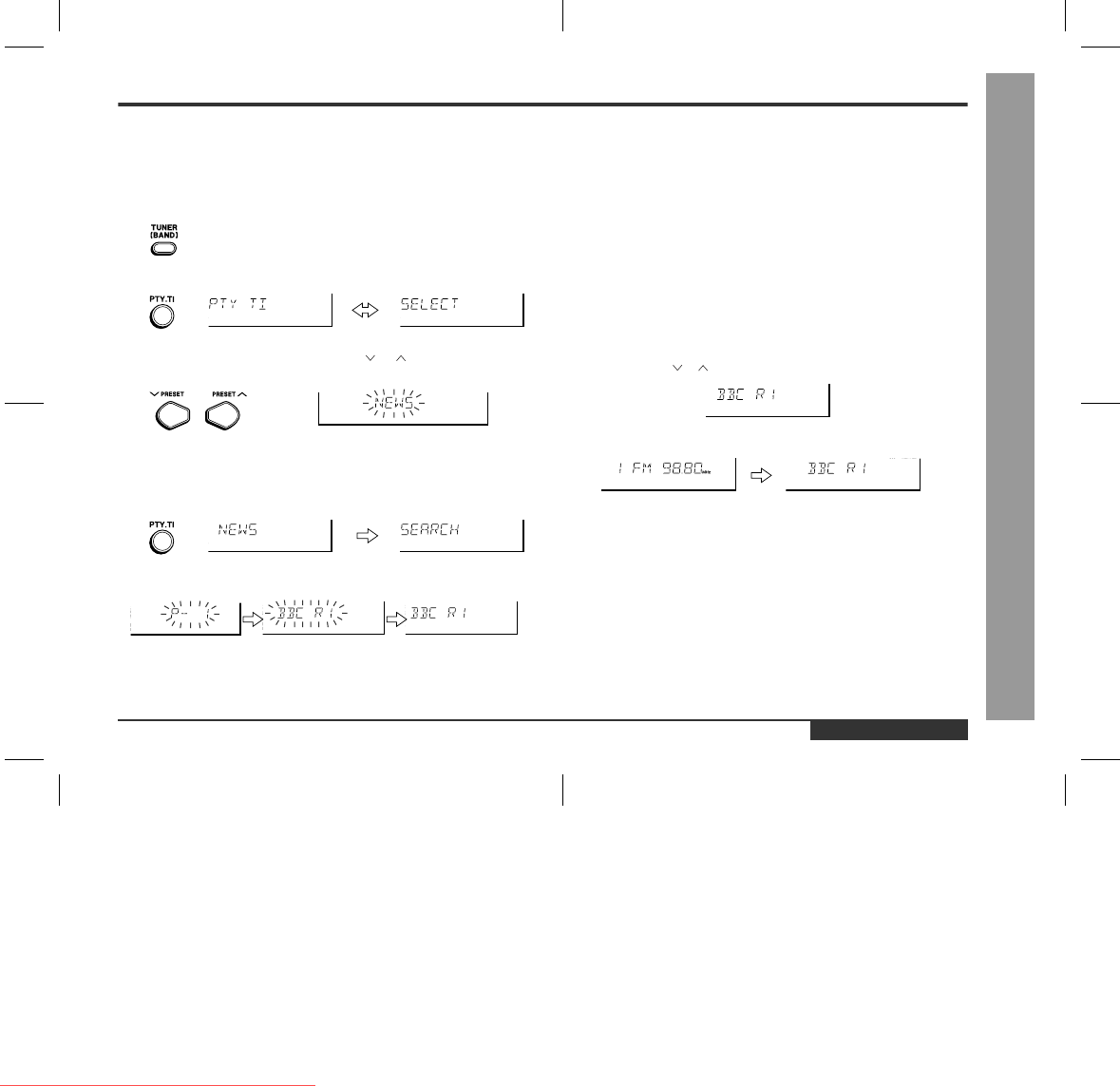 PTY.TI button whilst the channel number or station name is flashing. The unit will
