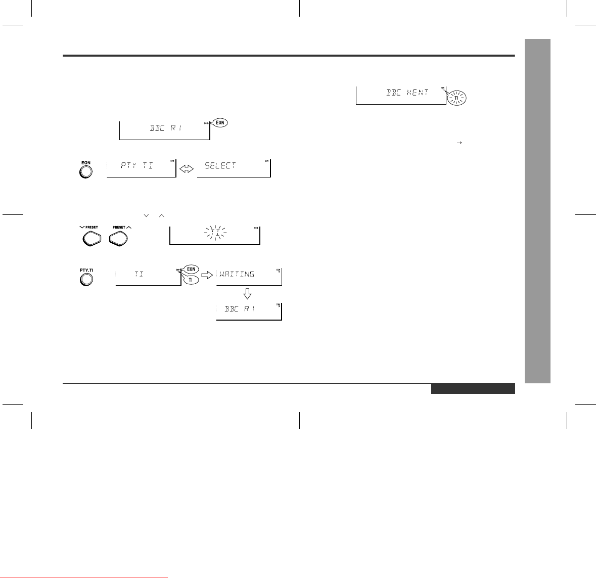 When in the EON stand-by mode, press the EON button. ("TI" "WAITING")