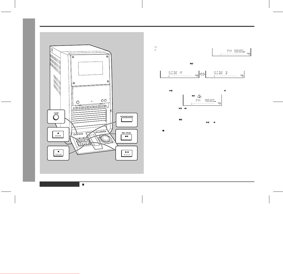 To record on both sides, begin on side A. (If recording is started from side B, the
