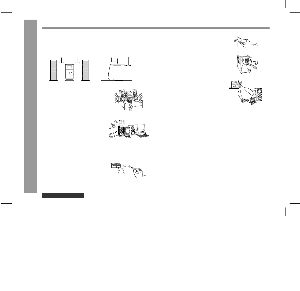 ensure that there is at least 20 cm (8") of free space along the sides, top and back