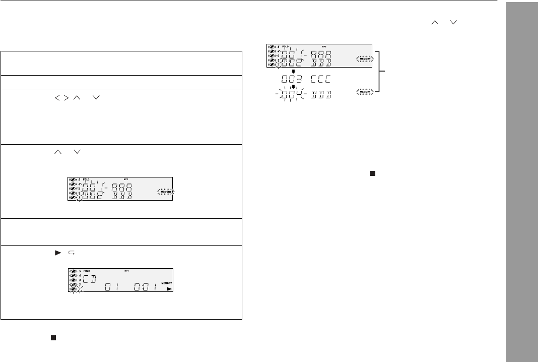 ton. If the folder (or title) is programmed, "MEMORY" flashes.