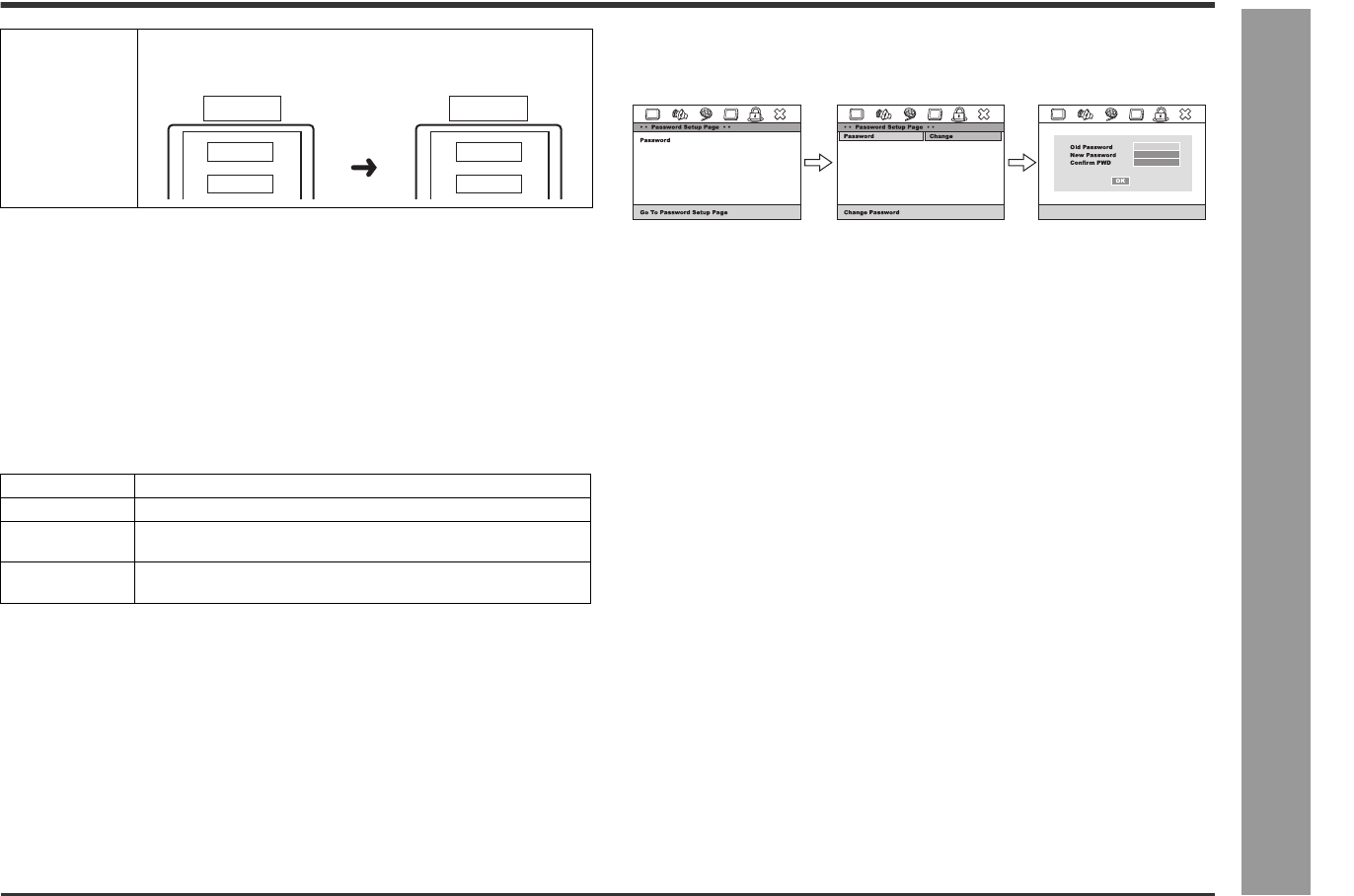 At setup menu, select “PASSWORD SETUP PAGE”, “PASSWORD” and then