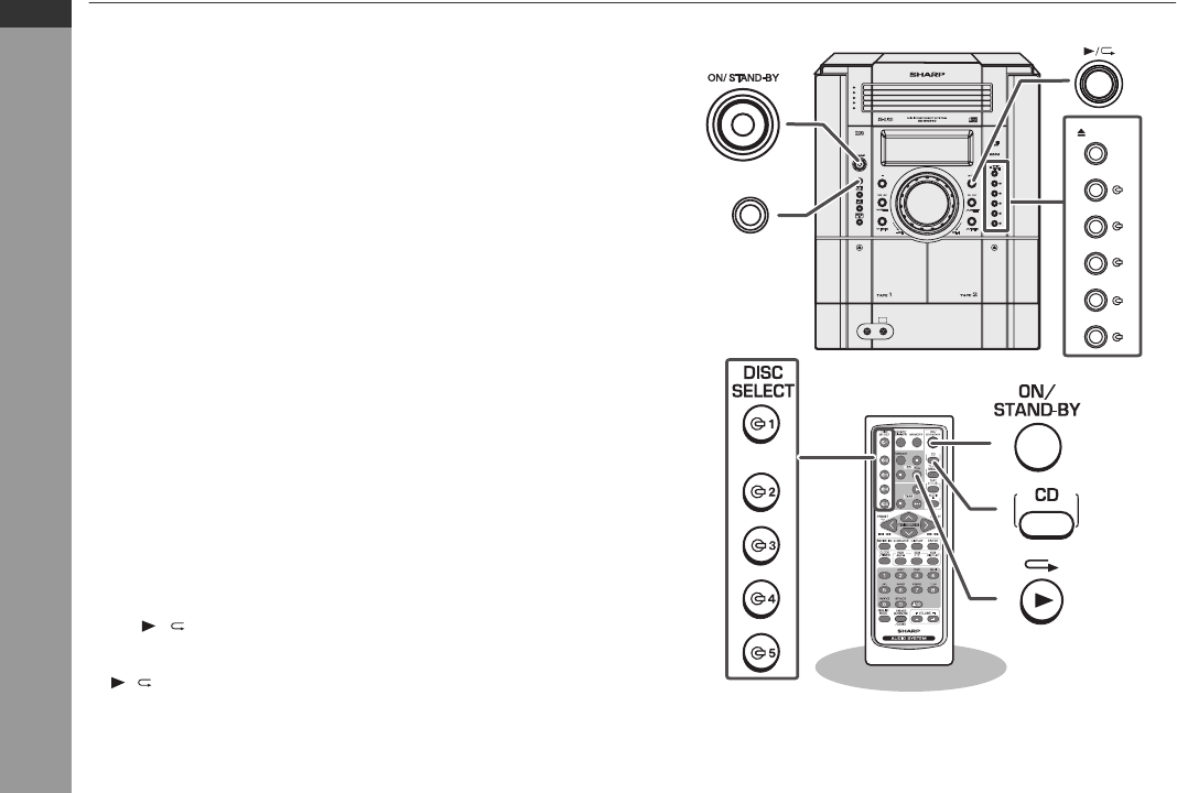CD-Taste (Hauptgerät und Fernbedienung): Das Gerät schaltet