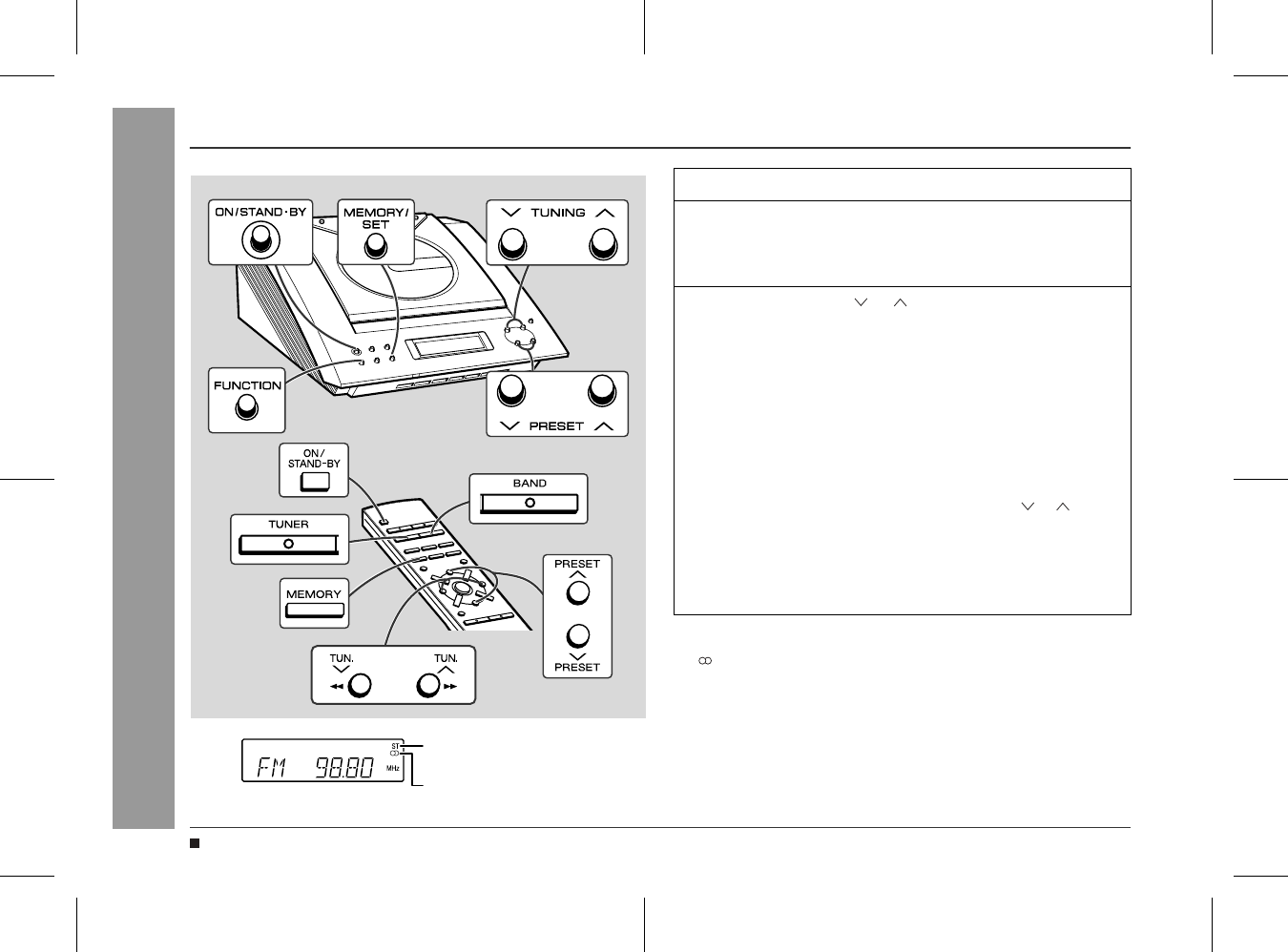 When operating with the remote control, press the TUNER but-