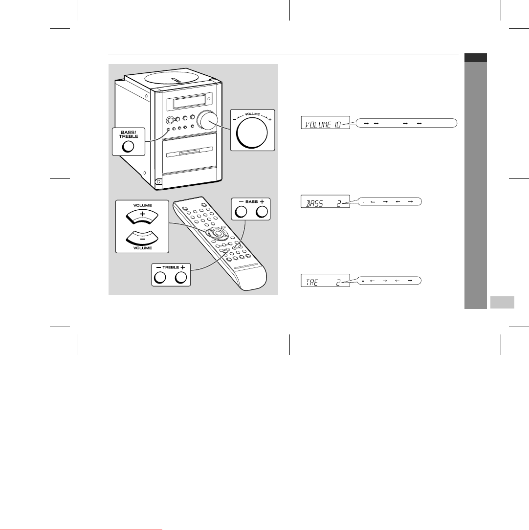 2 Within 6 seconds, turn the VOLUME control to adjust the bass.