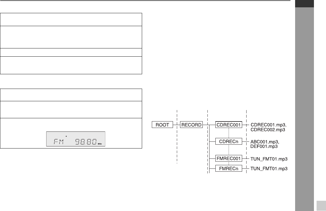 If the source is TUNER (FM band), folder FMREC001 will be created.
