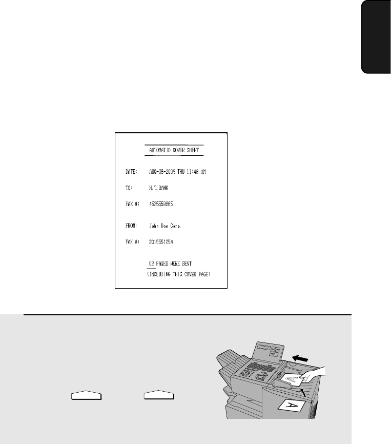 of your fax transmission. The cover sheet includes the date and time, the receiver’s