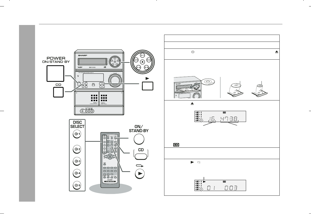 Place the CD on the disc tray 1, label side up.