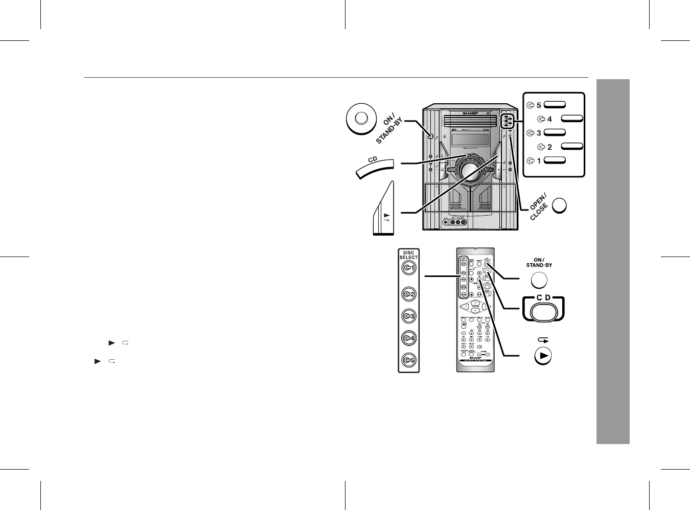 CD button (main unit and remote control): The unit turns on and