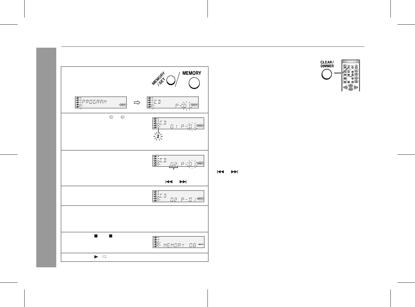 CLEAR/DIMMER button on the remote control. The "MEMORY" in-