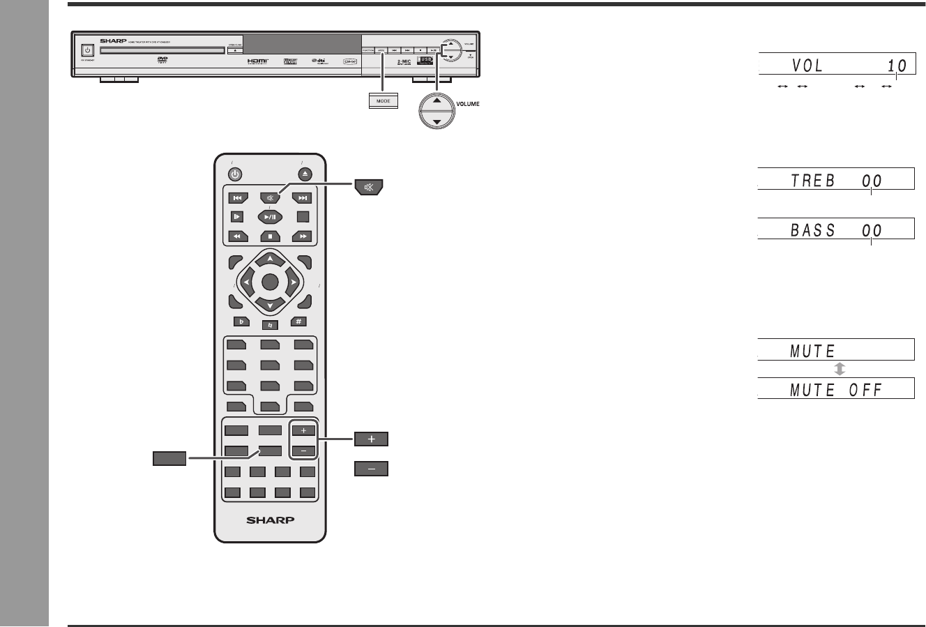 (VOLUME 9) button for decreasing.