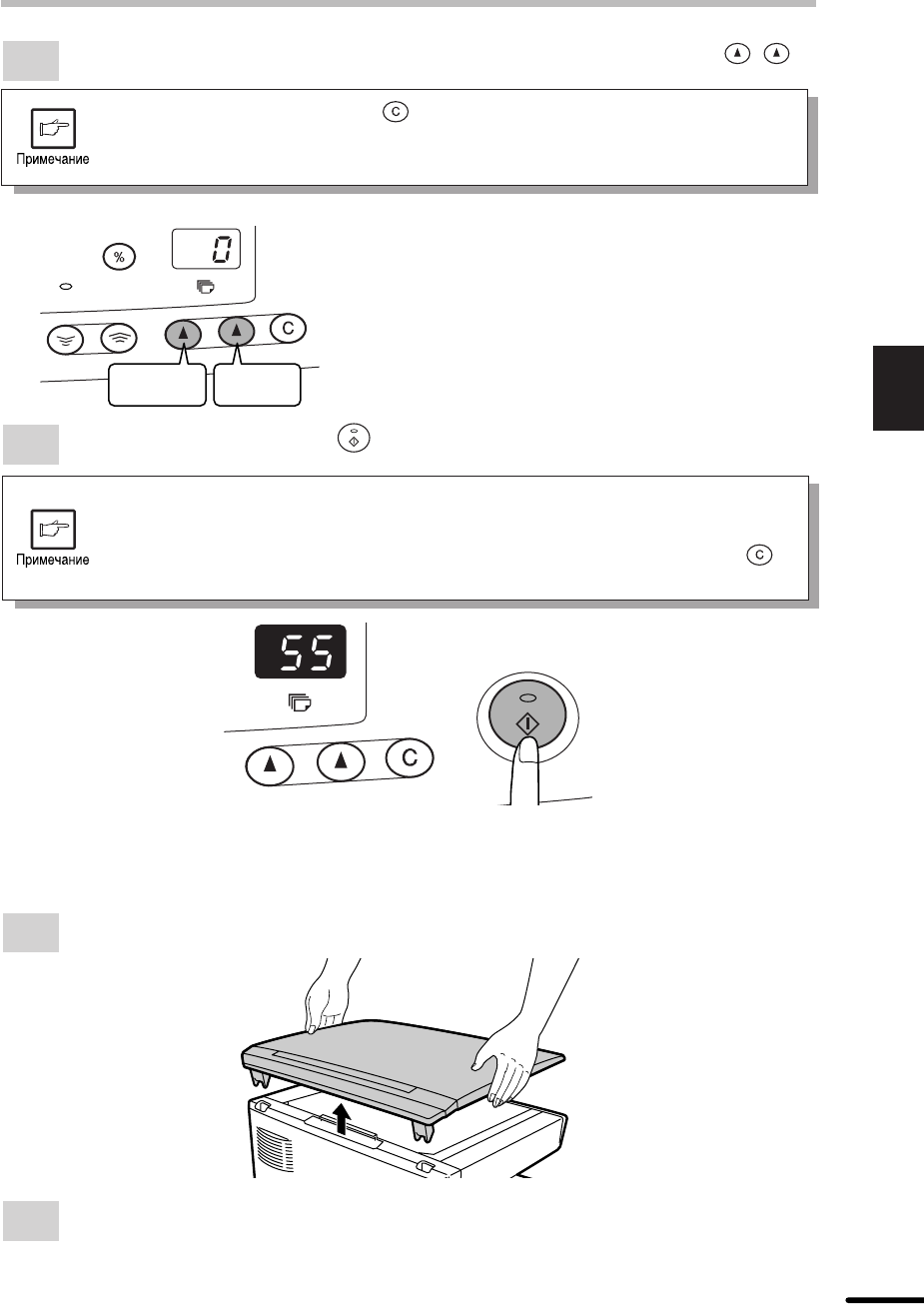 Установите число копий используя две клавиши количества копий ( , ).