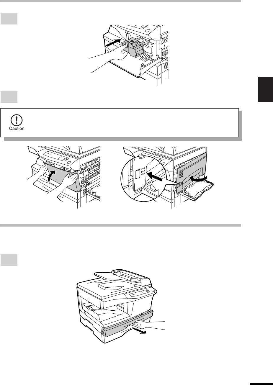 Raise the handle of the paper tray and pull the paper tray out until it stops.
