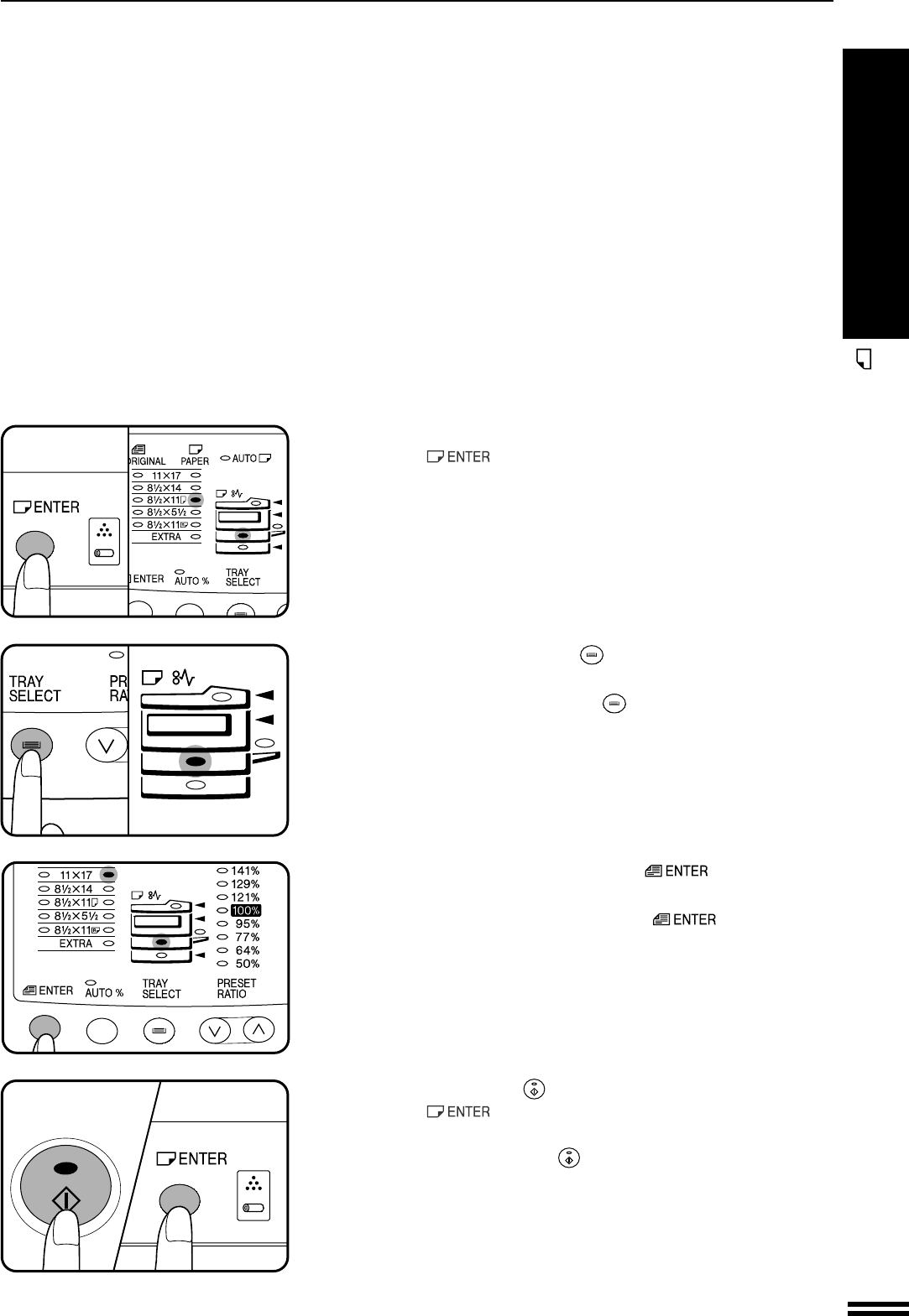 Each time the TRAY SELECT ( ) key is pressed, a paper tray