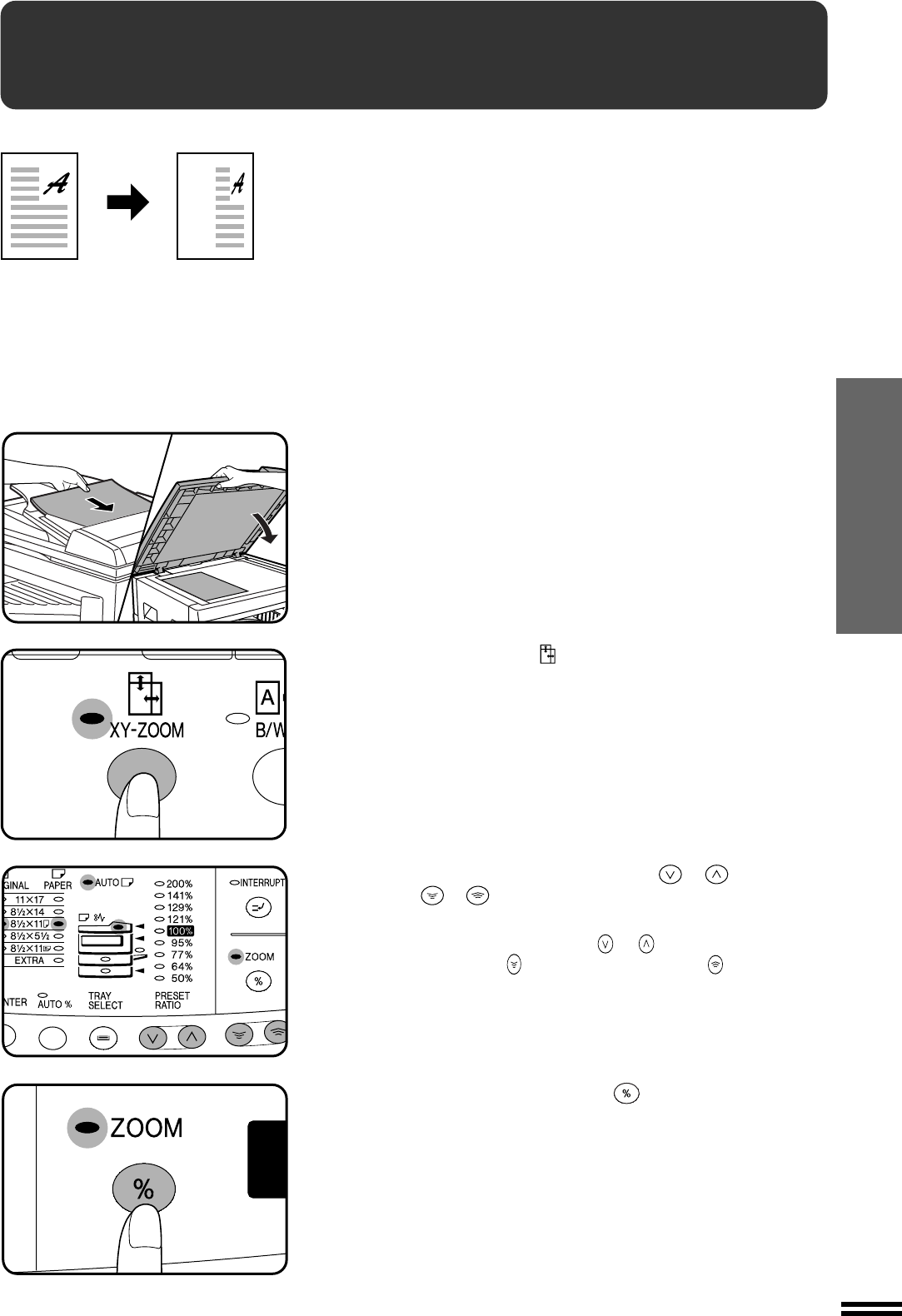 DUAL PAGE COPY feature first and then the XY ZOOM feature. (Enlargement