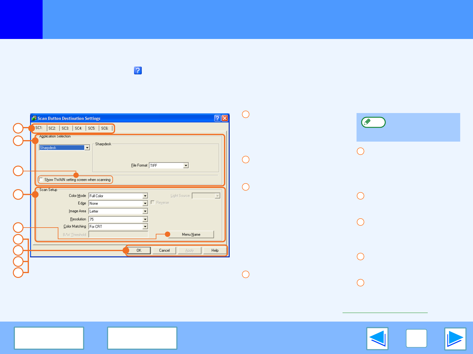 You can use Button Manager to select and change the functions of the six scan menus. Refer to Button Manager Settings.