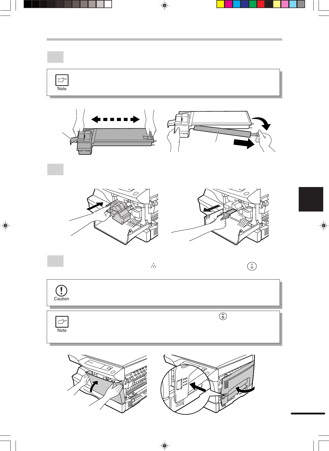 îòêðîéòå è çàêðîéòå áîêîâóþ êðûøêó. Êîïèð áóäåò ïîäàâàòü òîíåð