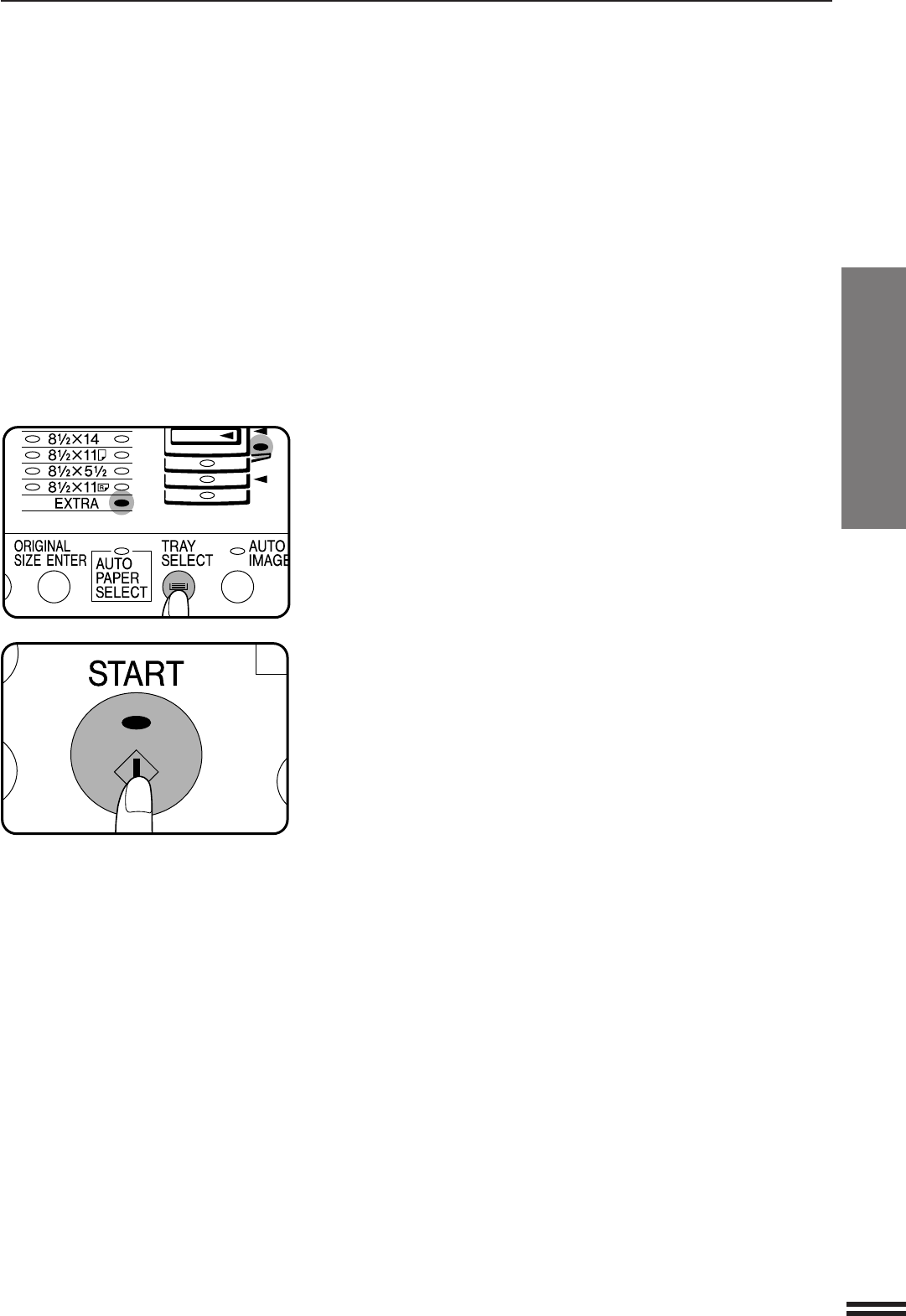 Press the TRAY SELECT key to select the bypass tray.