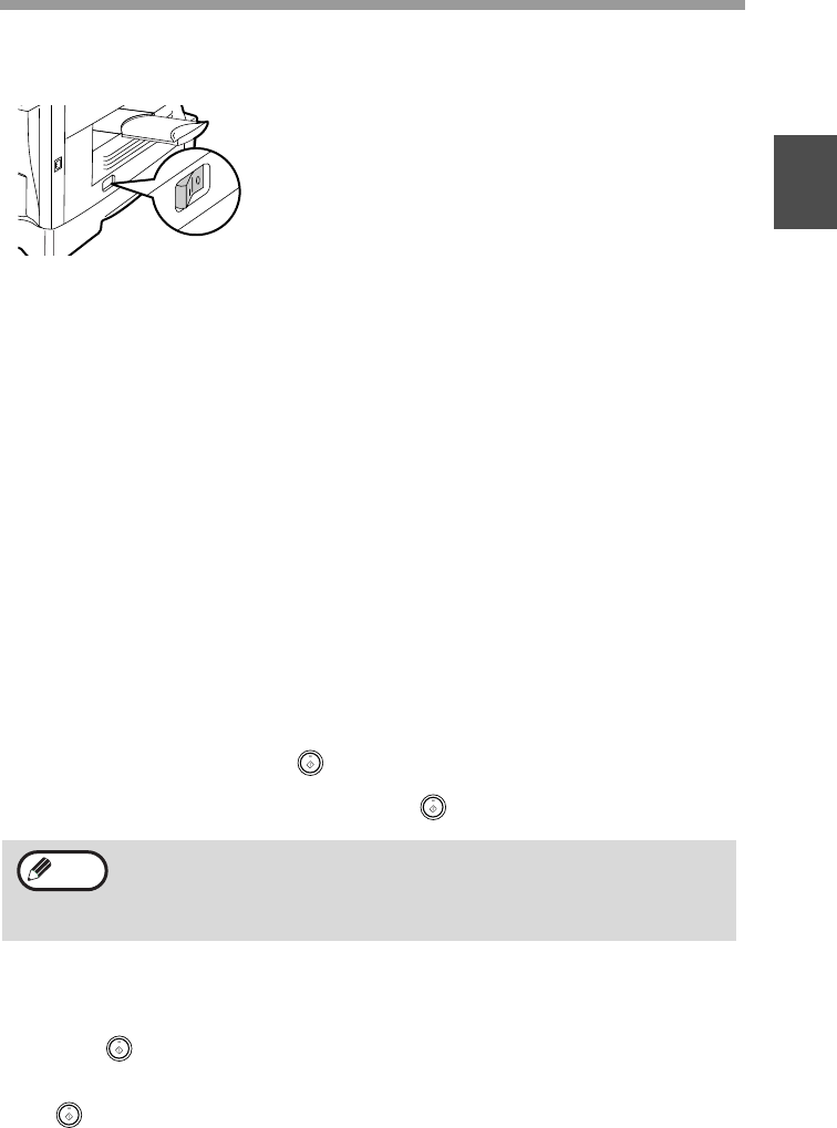 Make sure that the machine is not in operation and then turn the power