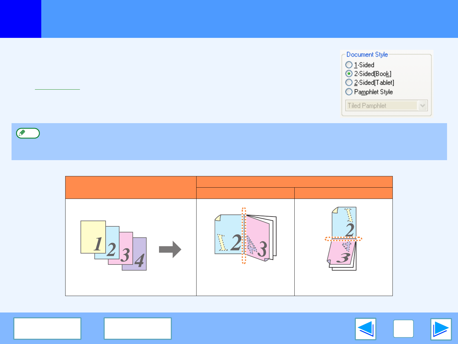 The printer driver setup screen of models that support two-sided printing contains a "Document