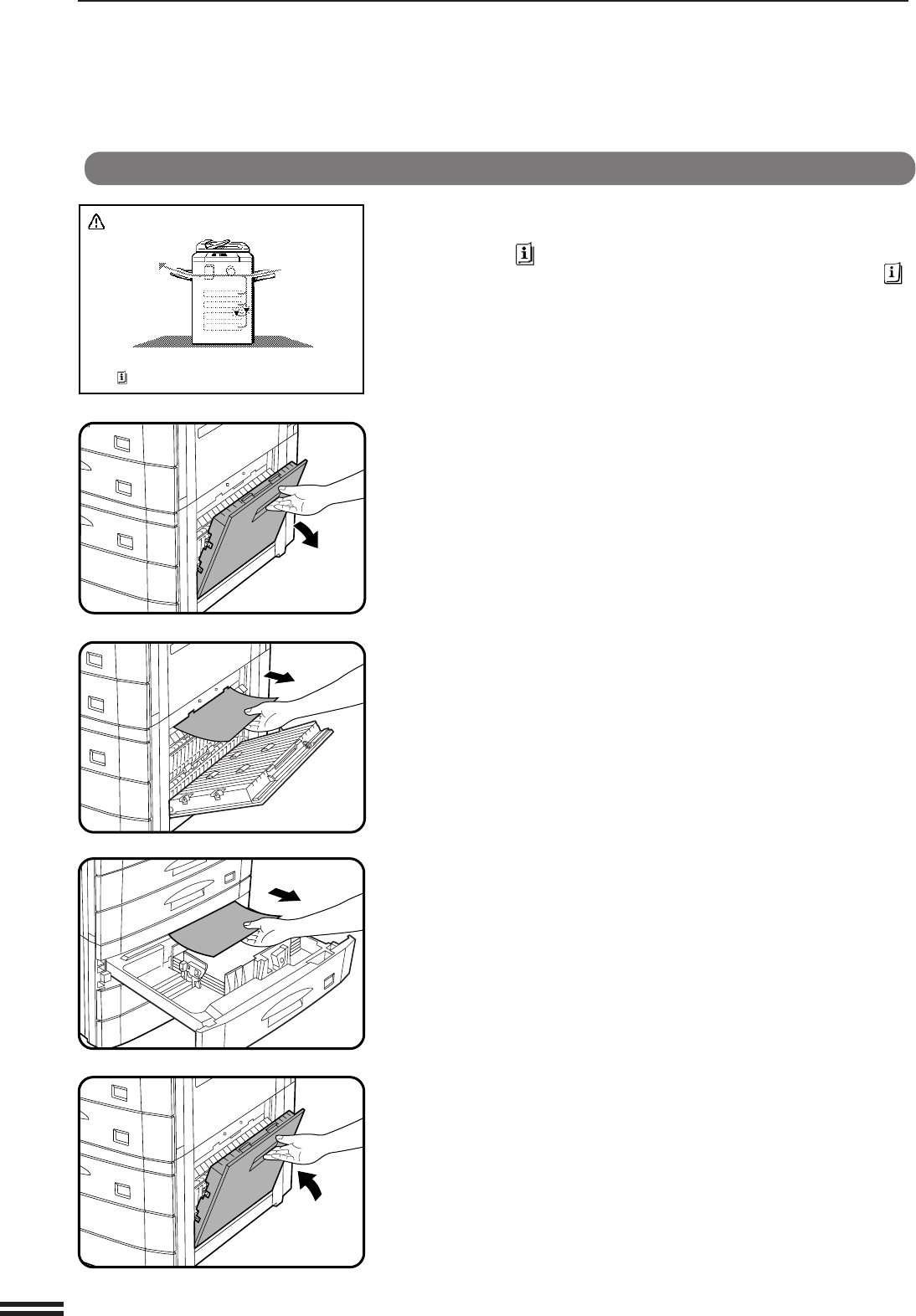a display of paper misfeed locations. Press the INFORMATION ( )