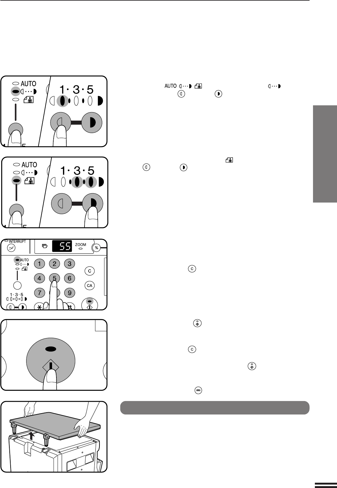 For manual copy density adjustment, press the AUTO/MANUAL/
