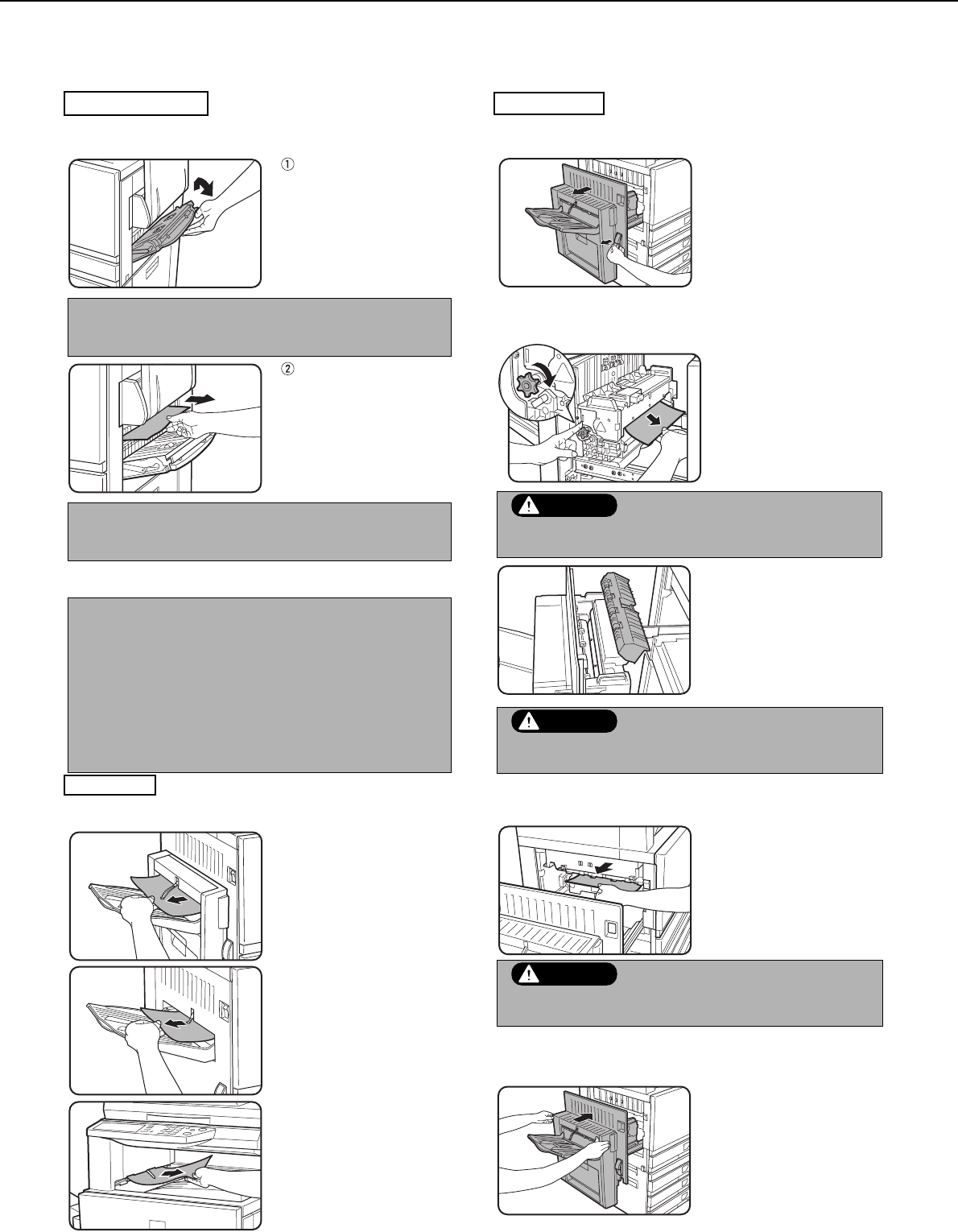 The fusing unit is hot. Take care in removing paper. (Do not
