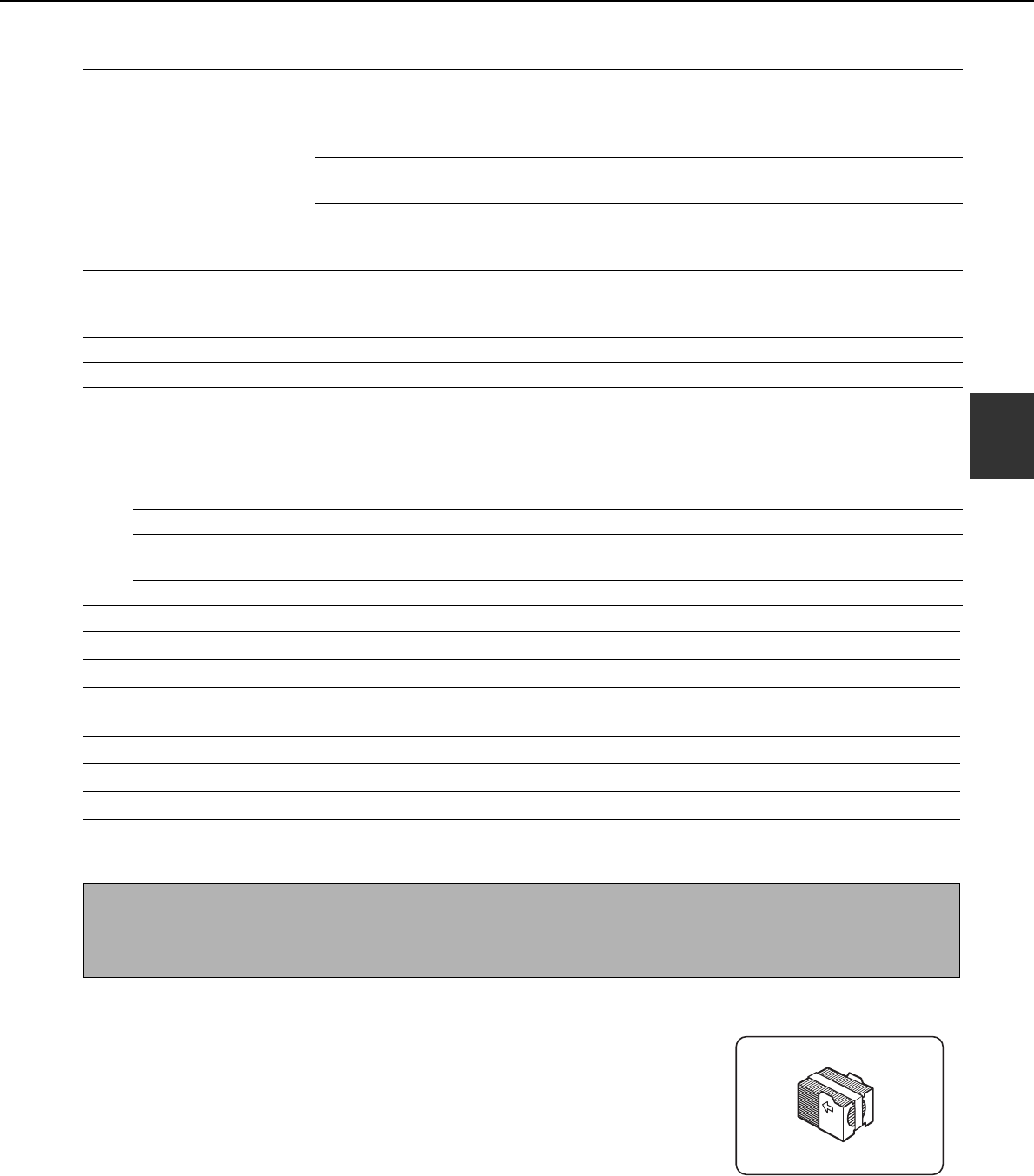 ● Transparency film, envelopes, postcards, and other special papers cannot be stapled.