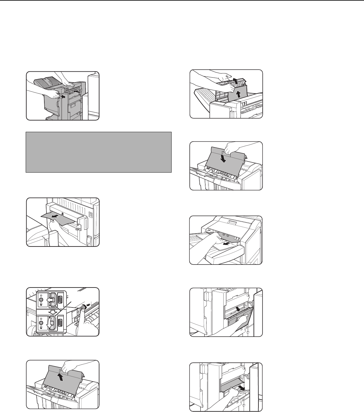 When a misfeed occurs in the saddle stitch finisher, remove the misfed paper following the procedure below.
