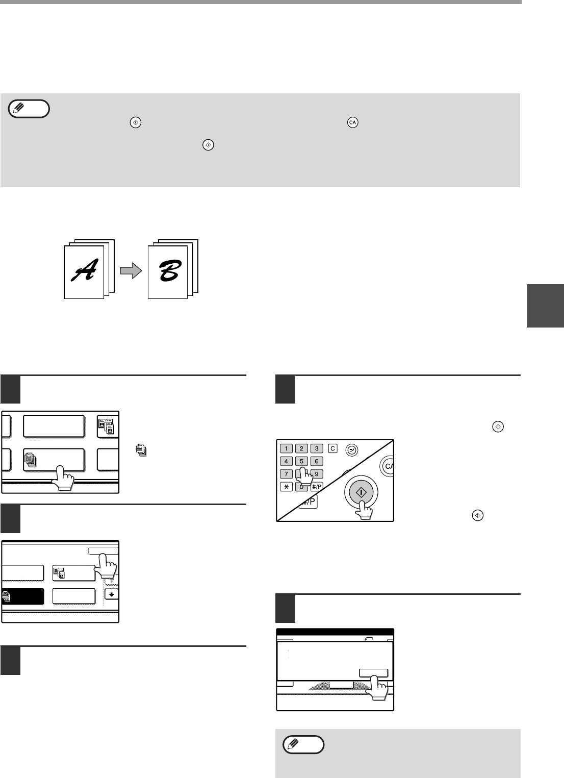 Use this function when you need to copy more originals than can be placed in the RSPF at once. (The maximum