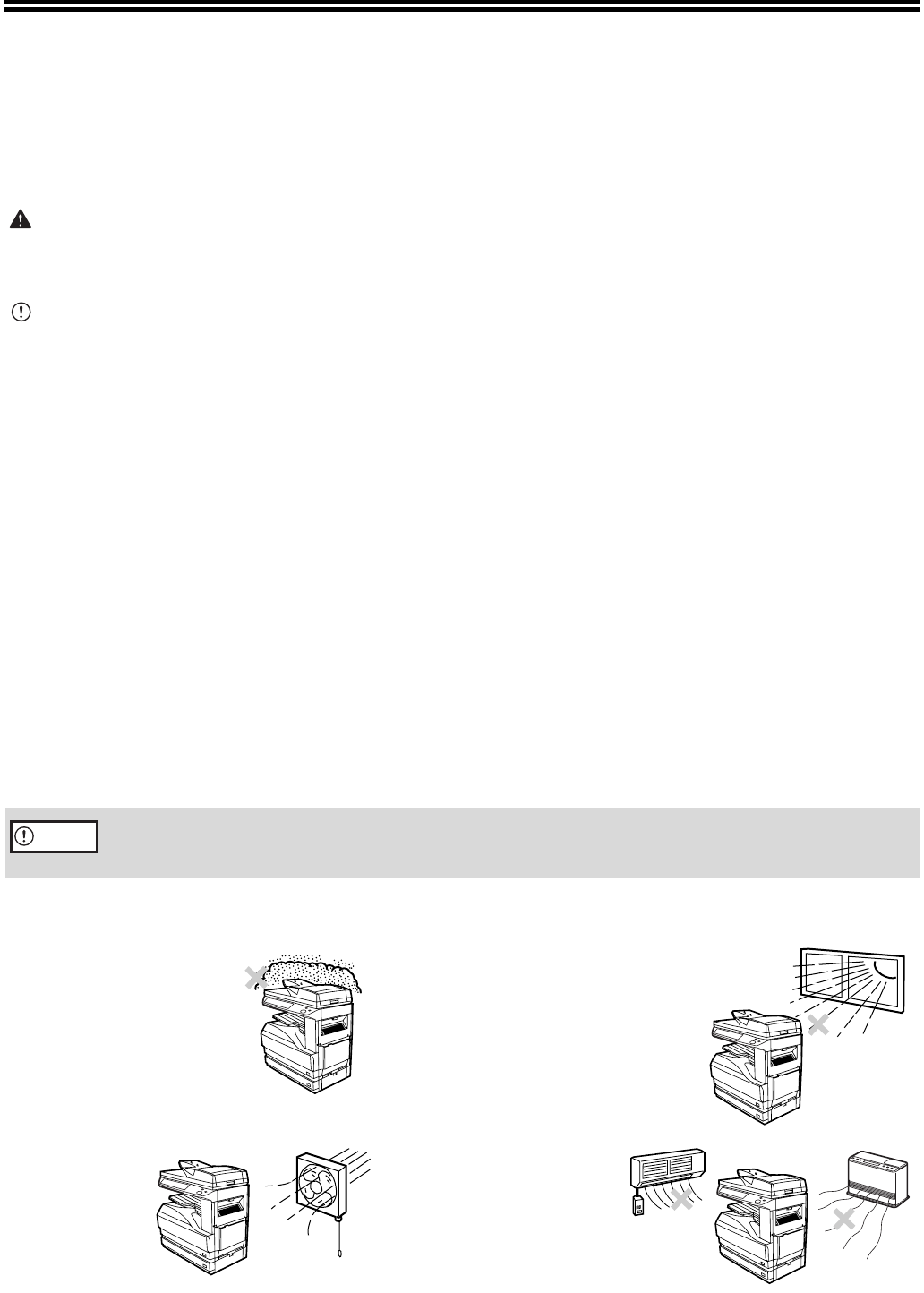 in this condition will cause poor copy quality and malfunctions. Leave the machine at room temperature for at least