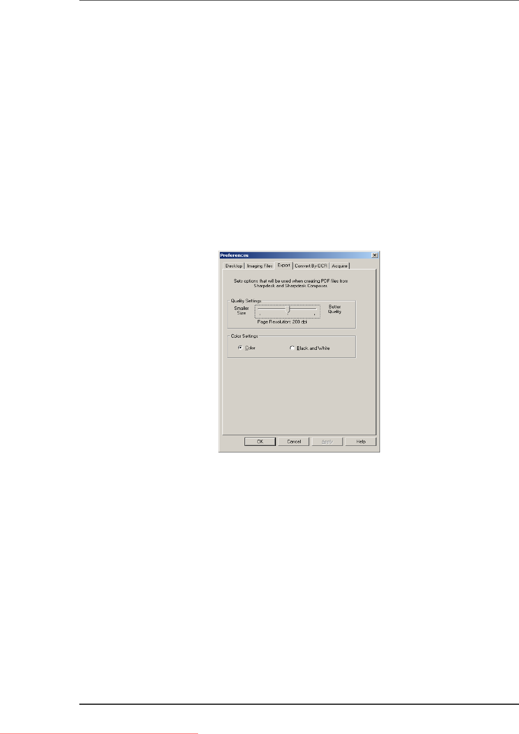 instead. The Export tab controls the PDF generation process for the image PDF file Sharpdesk