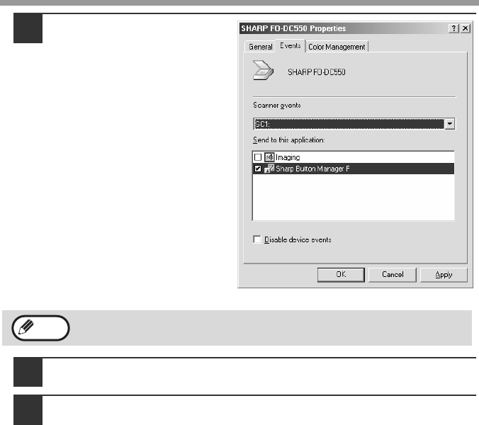Select "SC2:" from the "Scanner events" pull-down menu. Select "Sharp