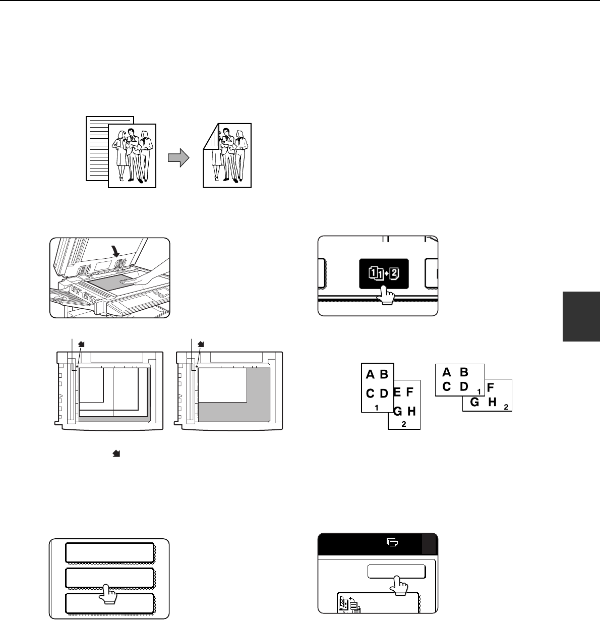 When the optional duplex module is installed, the following automatic two-sided copying can be performed. The