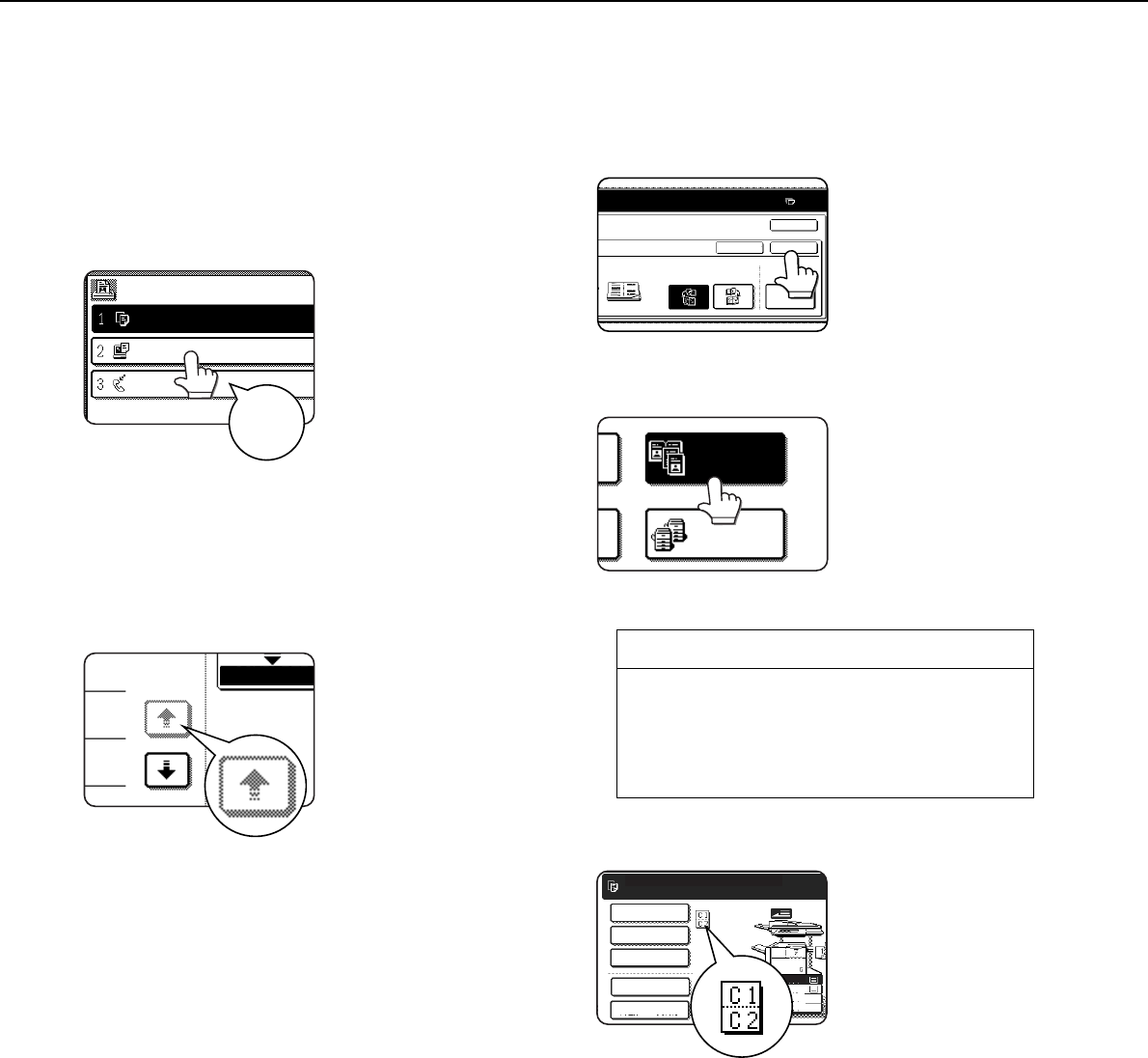 The touch panel screens shown in this manual are