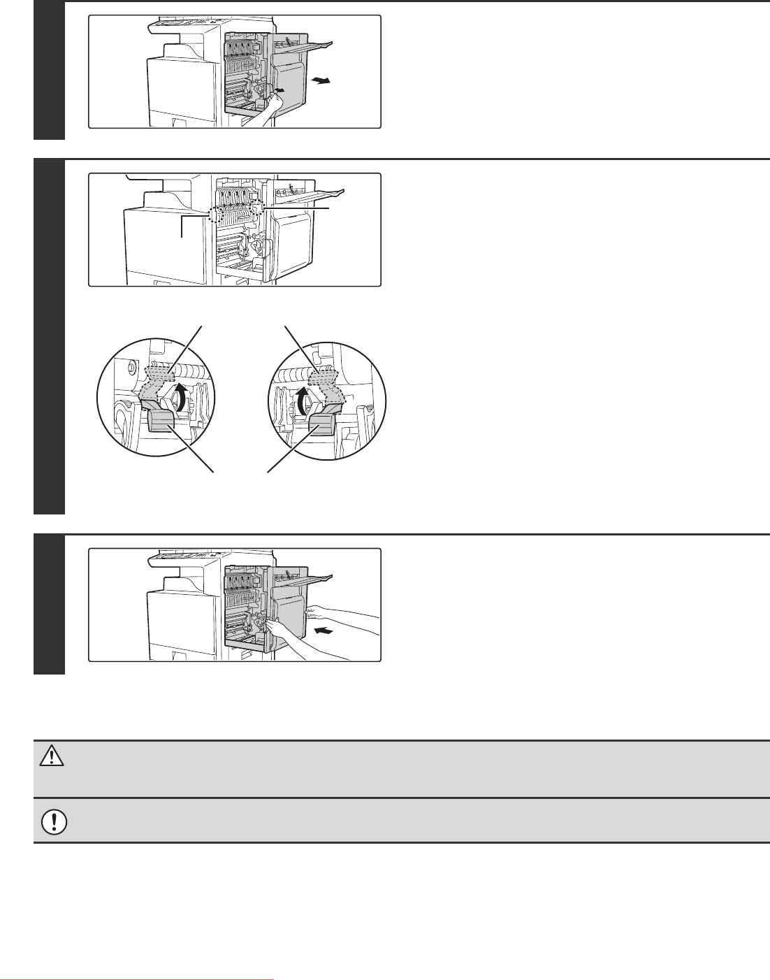 The fusing unit is hot. Take care not to burn yourself when operating the fusing unit pressure adjusting levers.
