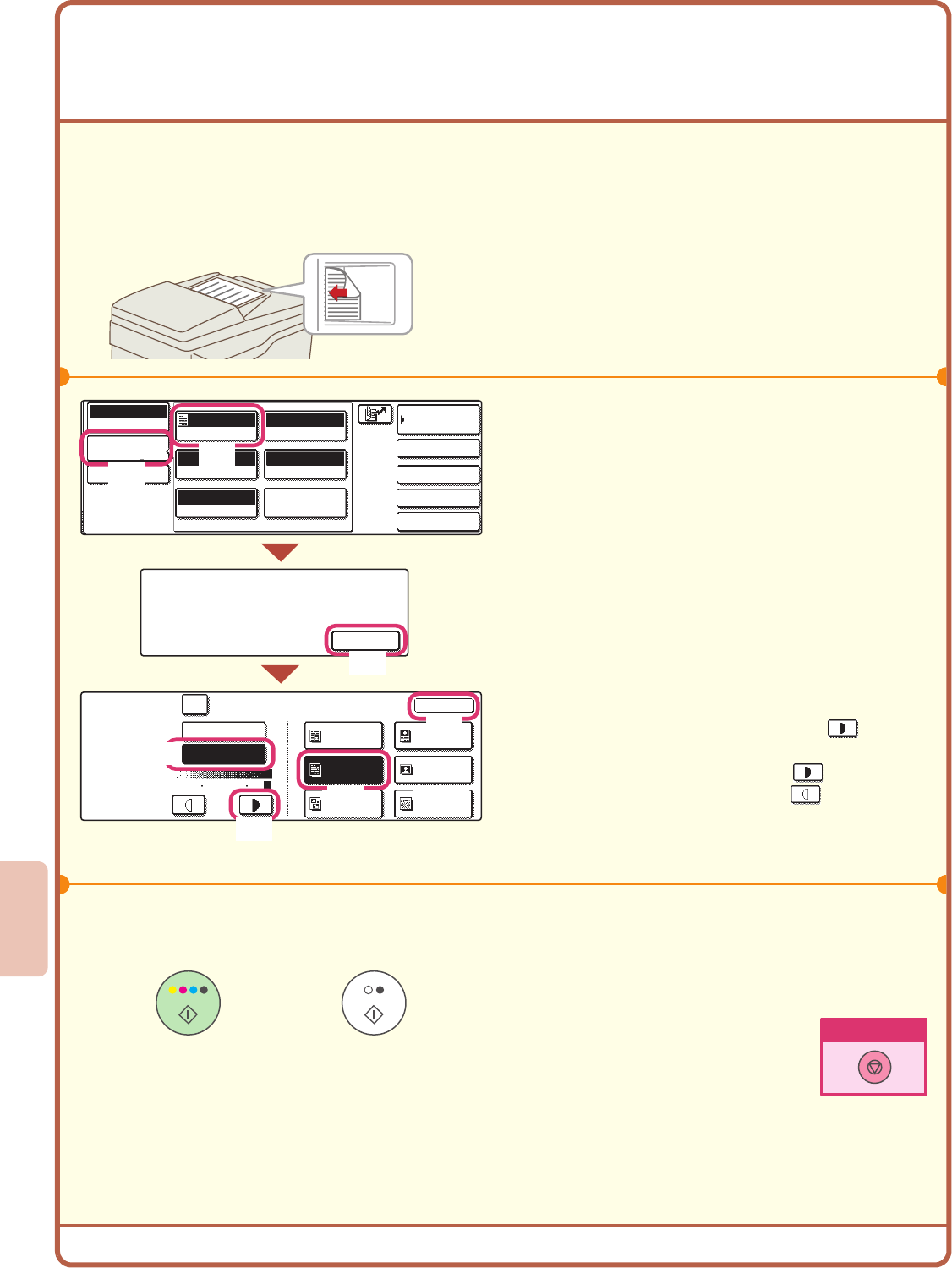 This section explains how to darken a light original and set the exposure mode to "Text".
