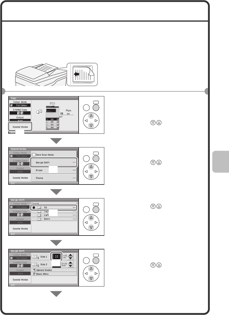 The procedure for selecting settings for "Adding margins (Margin Shift)" is