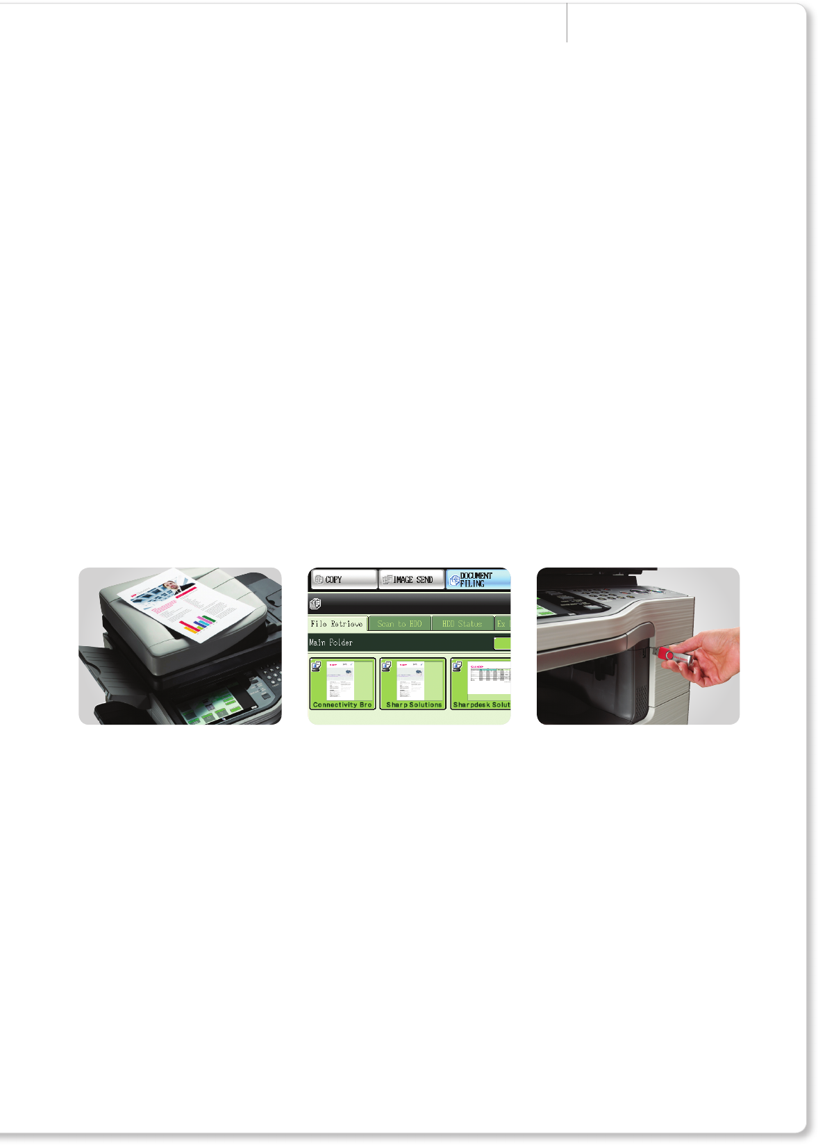 Fast copy/print speeds of 38 ppm/cpm Thumbnail views for easier operation USB port for walk-up printing from a