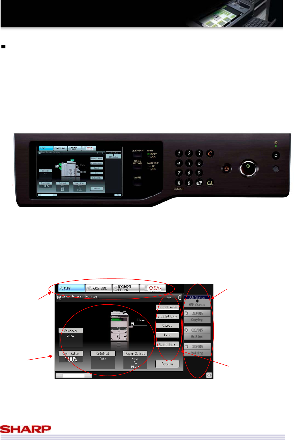 The MX-M503N, MX-M453N, MX-M363N, and MX-M283N models include a fully customisable 8.5” colour LCD