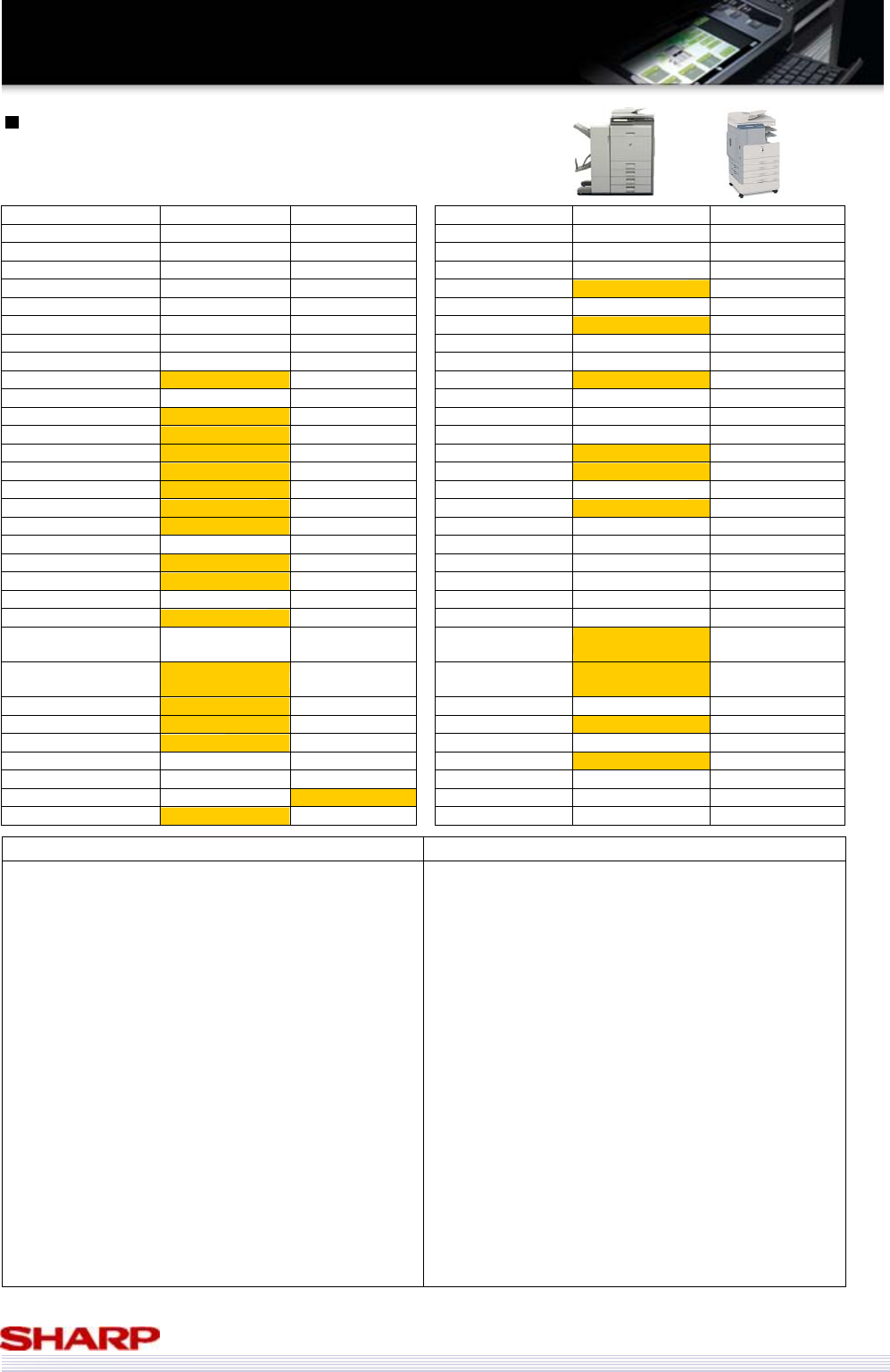 Copier Std. Mem. MB 640mb 256mb (shared) Functionality Sharpdesk